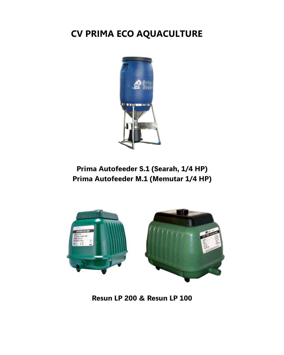 Prima Autofeeder S.1 (Searah, 1/4 HP) & Prima Autofeeder M.1 (Memutar 1/4 HP) | Resun LP 200 | Resun LP 100 |