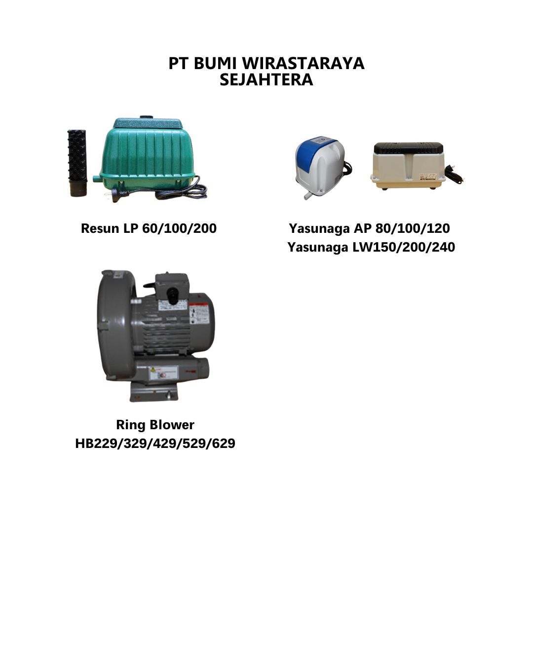 Resun LP 60/100/200 | Yasunaga AP 80/100/120 | Yasunaga LW150/200/240 | Ring Blower HB229/329/429/529/629